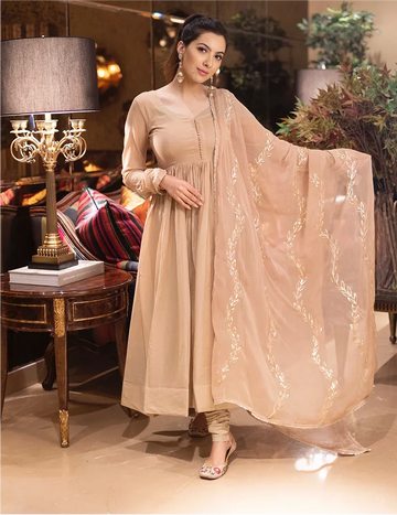 Embroidered A-Line Kurta Trousers With Dupatta Set