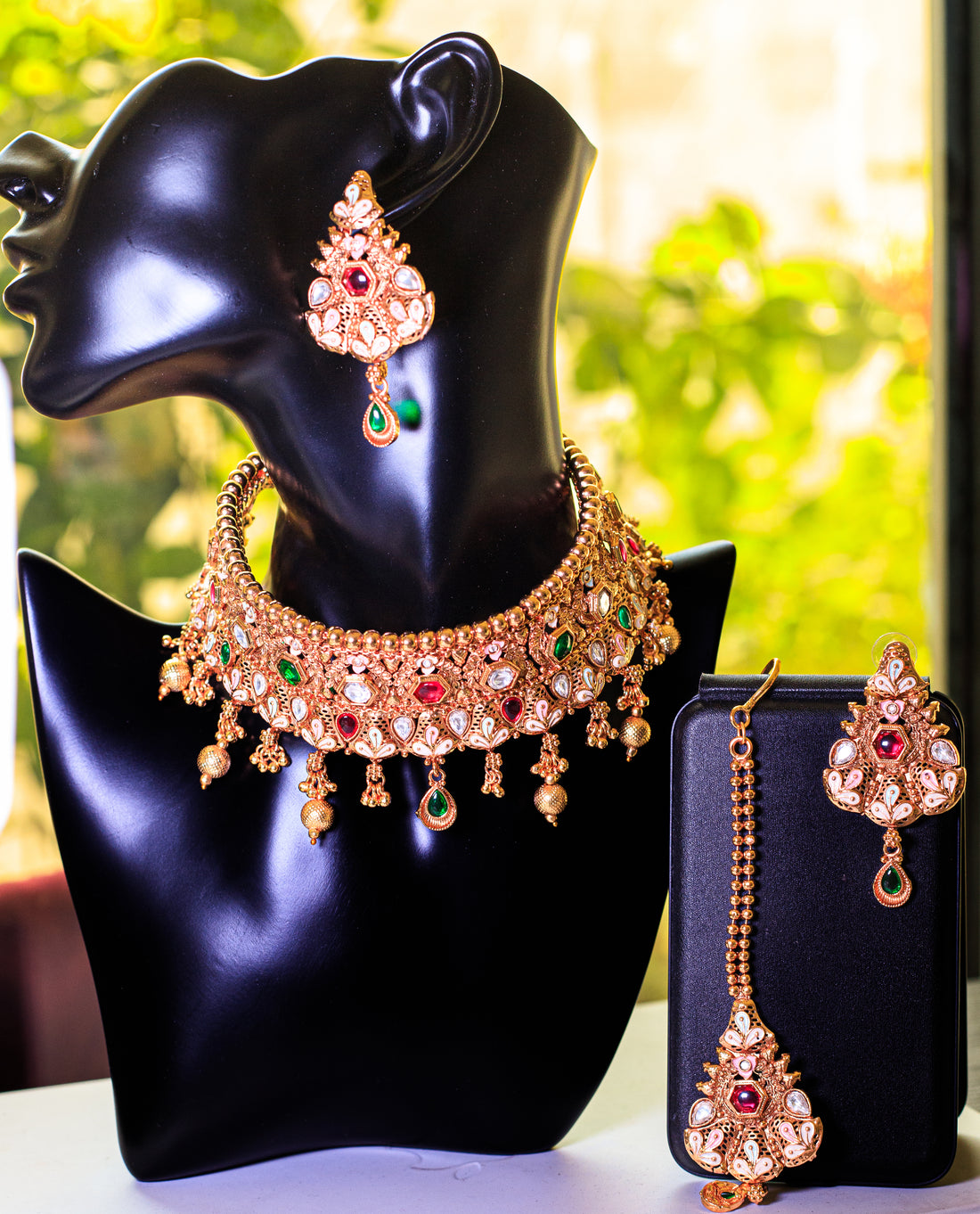Choker Necklace Set with beads and Meenakari work idle for Bridal look and with lehenga...