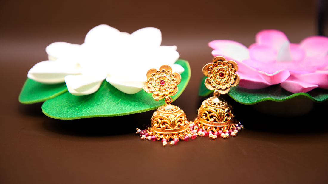 Stylish Earring pair/Jhumka Style with Ruby beads
