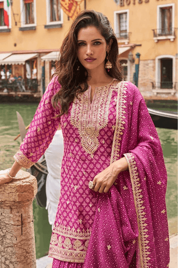 Exude grace and sophistication with the timeless elegance of the Chinon Silk Salwar Kameez. Crafted...