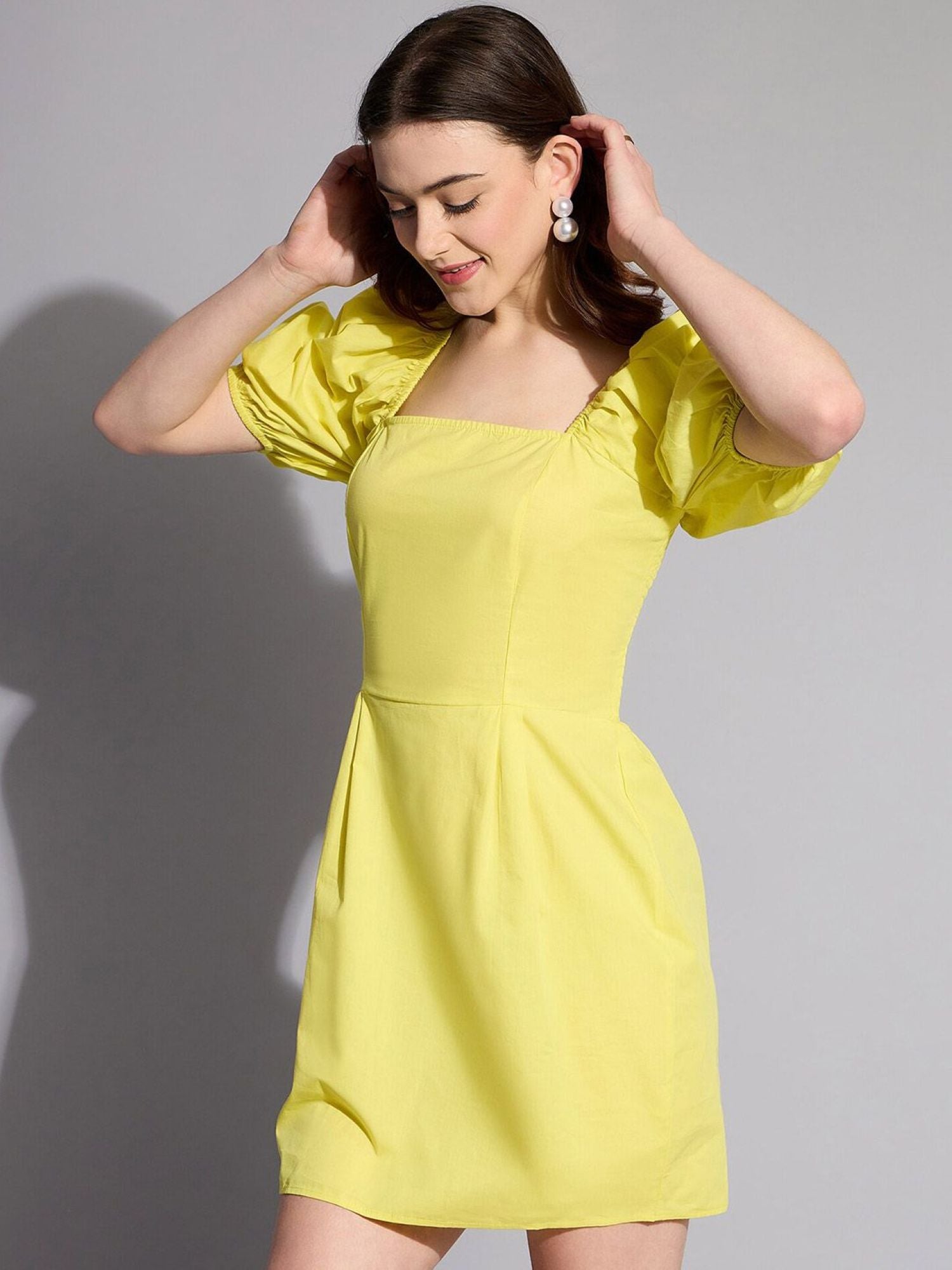 Square-Neck Puff-Sleeve Mini Dress