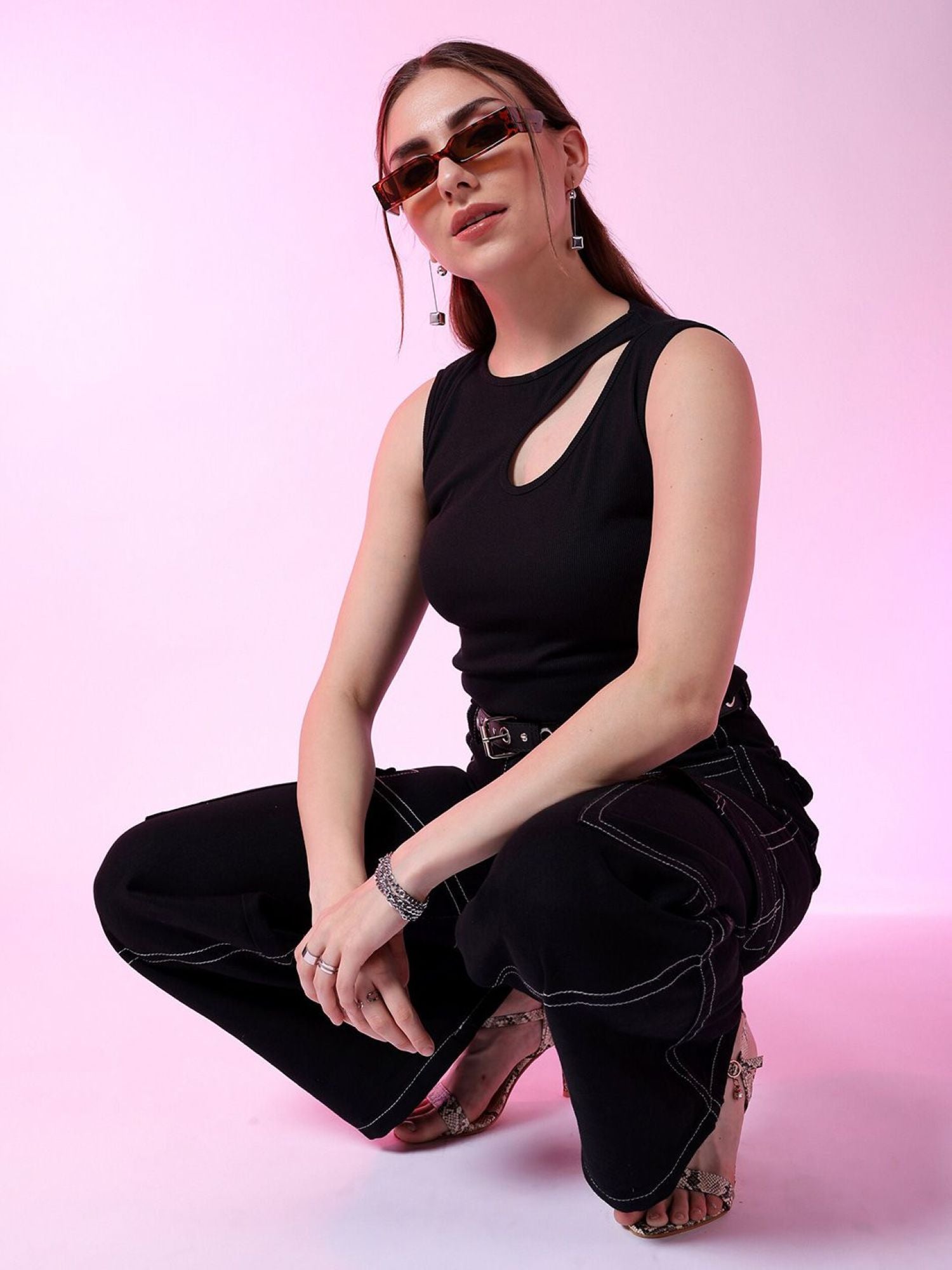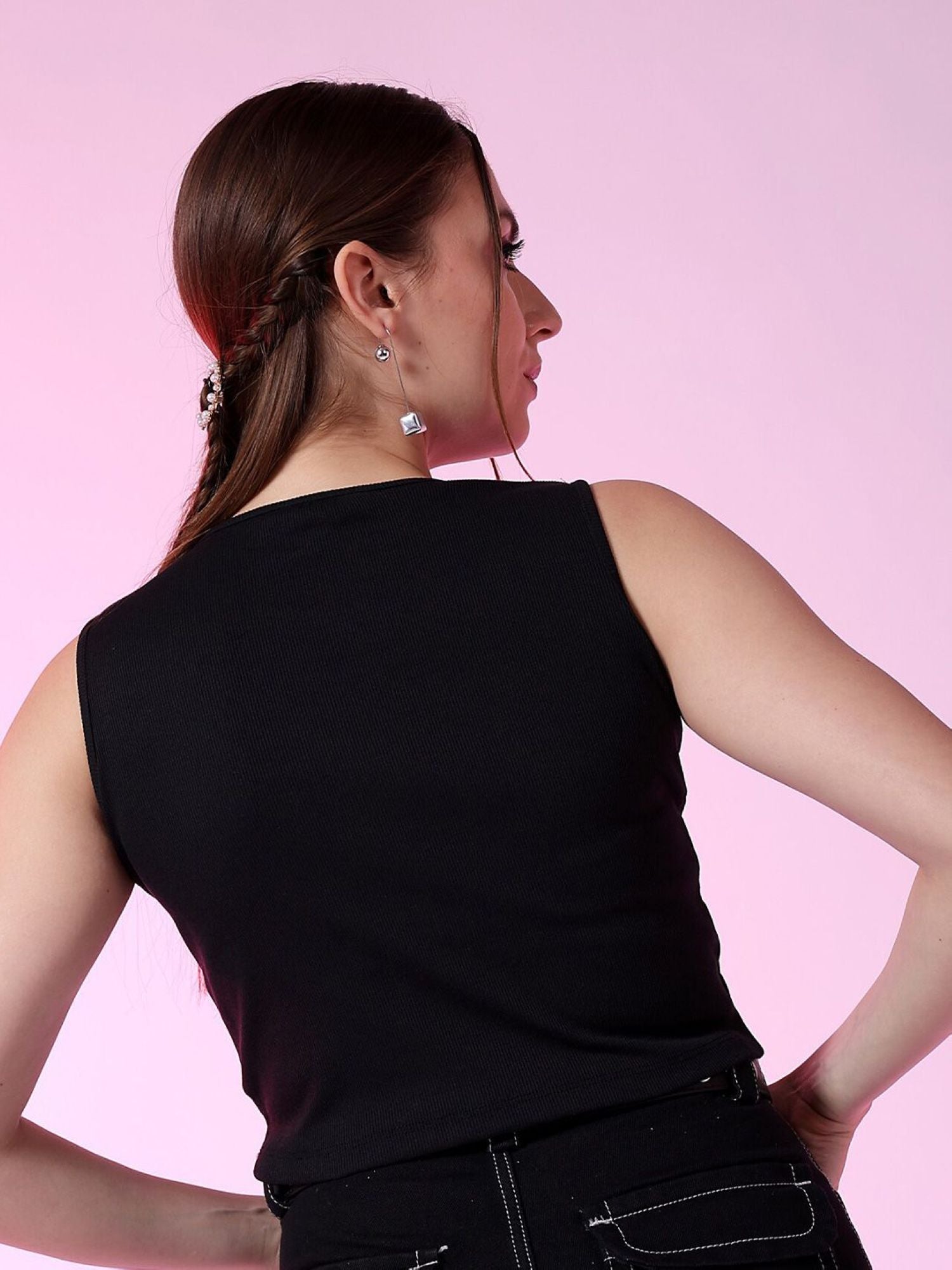 Add a fresh pop of color to your wardrobe with this women’s Black tank top. Designed with a flattering, body-skimming fit, it features a classic sleeveless cut and a versatile neckline that layers beautifully or stands strong on its own.