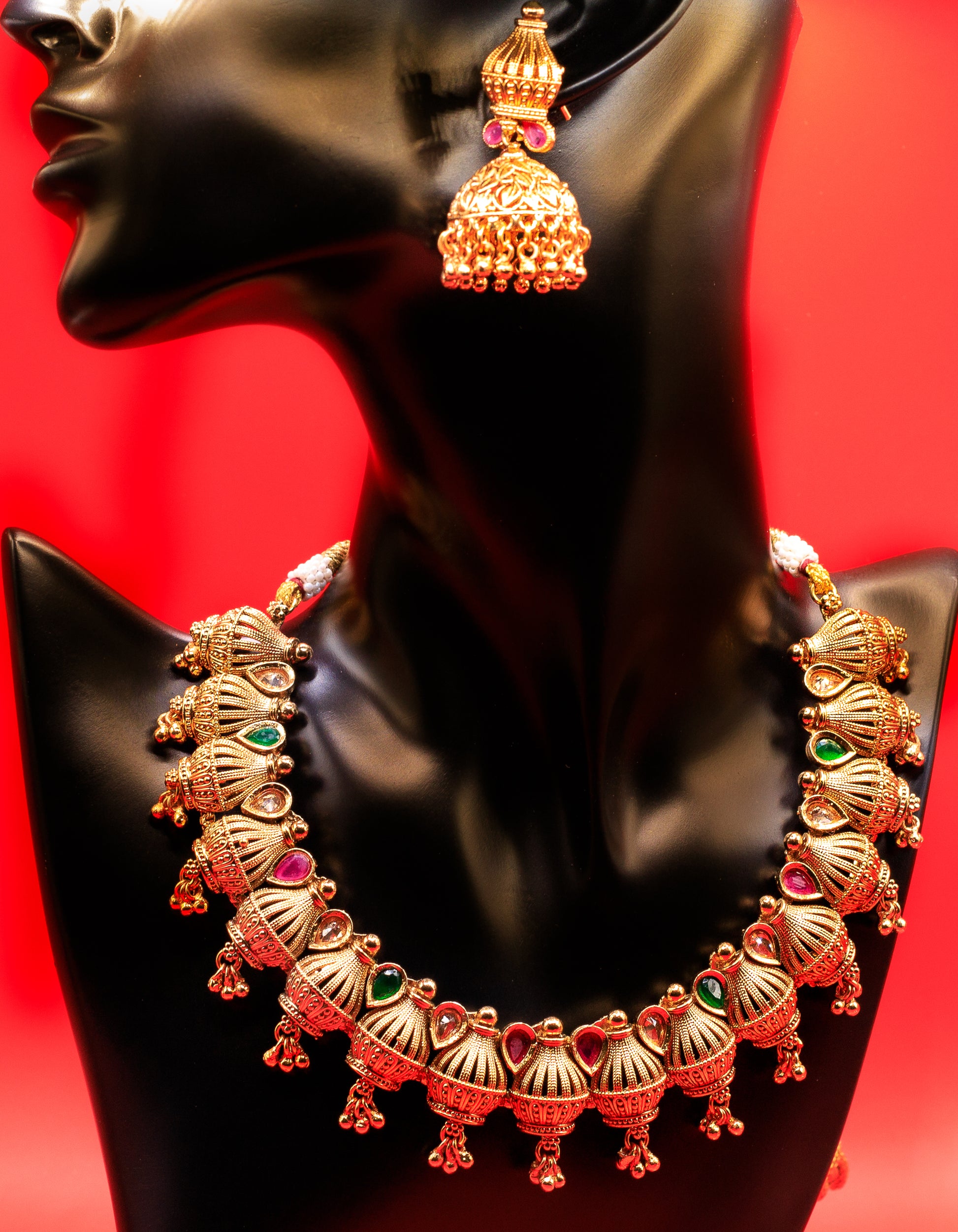 Necklace with Earrings Polki/Meena work, for wide shoulder saree ware and with wedding wares